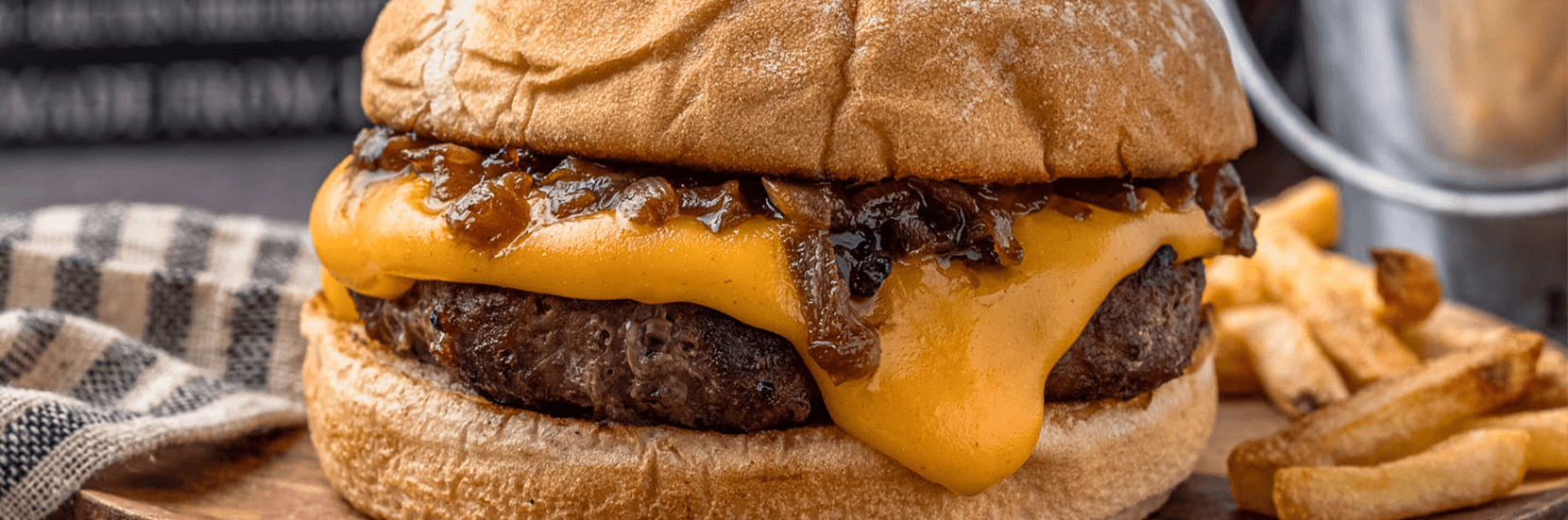 Lightly toast the burger buns on the grill until golden. Place each Angus BUBBA burger on the bottom bun, drizzle with the warm cheese sauce, and top generously with your homemade onion jam. Finish with the top bun and serve immediately while everything is hot and melty.