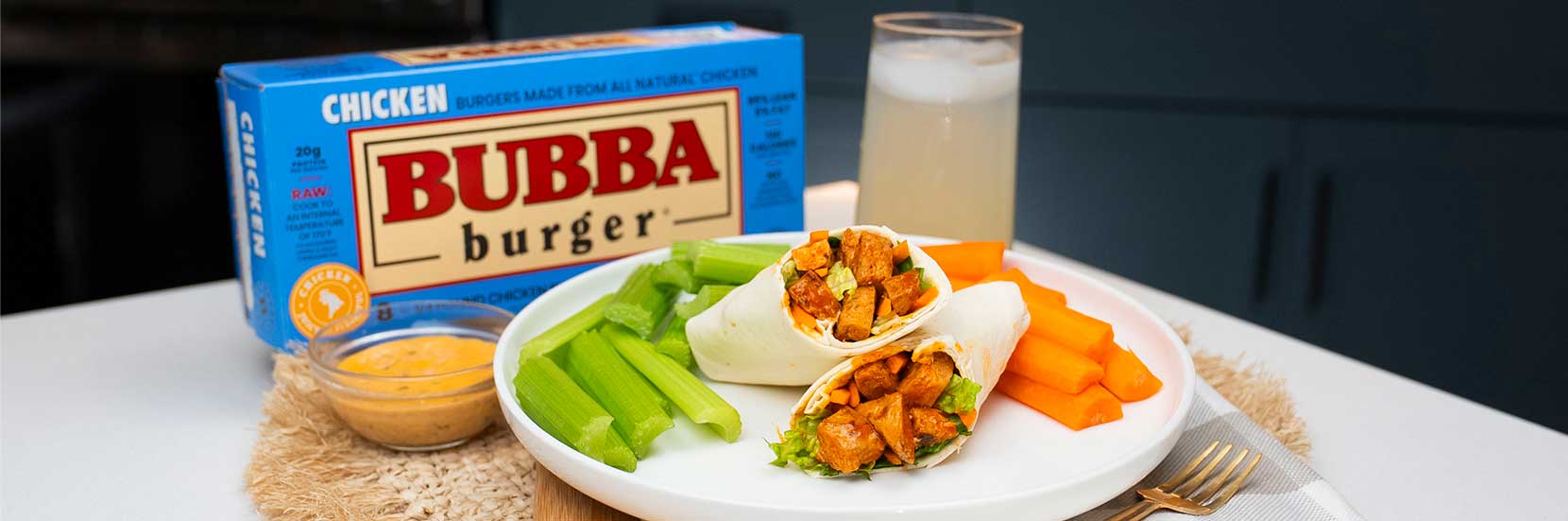 Once your Chicken BUBBA burgers are cooked, slice them into strips or bite-sized pieces. Then, toss the chicken in a bowl with buffalo sauce until they are fully coated.